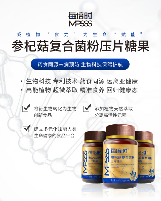 每培时参杞菇复合菌粉压片糖果:药食同源,生物科技创新打造